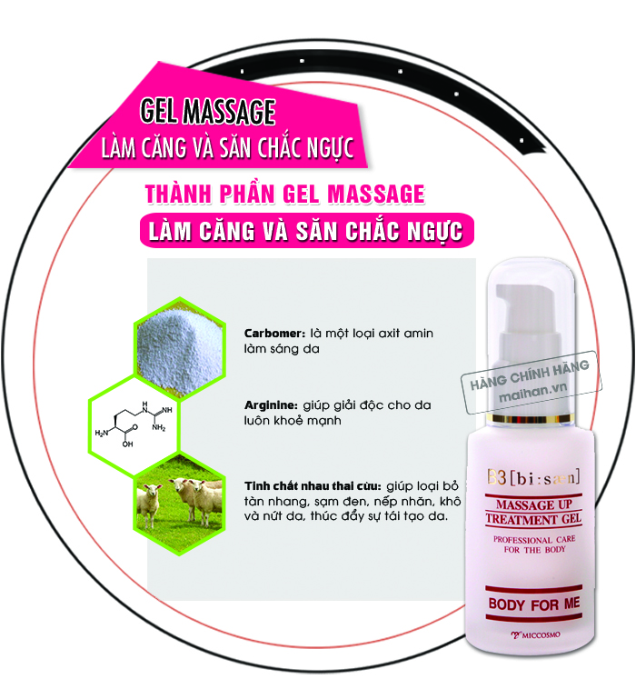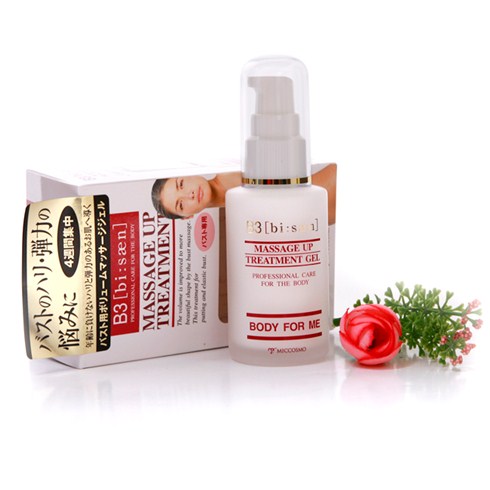 Gel massage làm căng và săn chắc ngực B3 Massage Up Treatment được chiết xuất từ tinh dầu thì là, chất isoflavone đậu nành, sữa ong chúa ở dạng gel giúp cho ngực của bạn căng mịn và săn chắc.